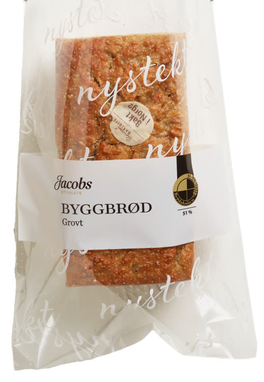 Grovt Byggbrød 640g Jacobs Utvalgte er et produkt levert av United Bakeries Norway og produktet inneholder 228.00 kcal per 100g, hvorav 3.20 g er fett, 7.70g er proteiner og 39.70 g er karbohydrater.