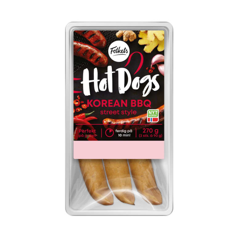 Hot Dogs Korean Bbq 270g Folkets er et produkt levert av Unil og produktet inneholder 226.00 kcal per 100g, hvorav 18.00 g er fett, 13.00g er proteiner og 2.80 g er karbohydrater.
