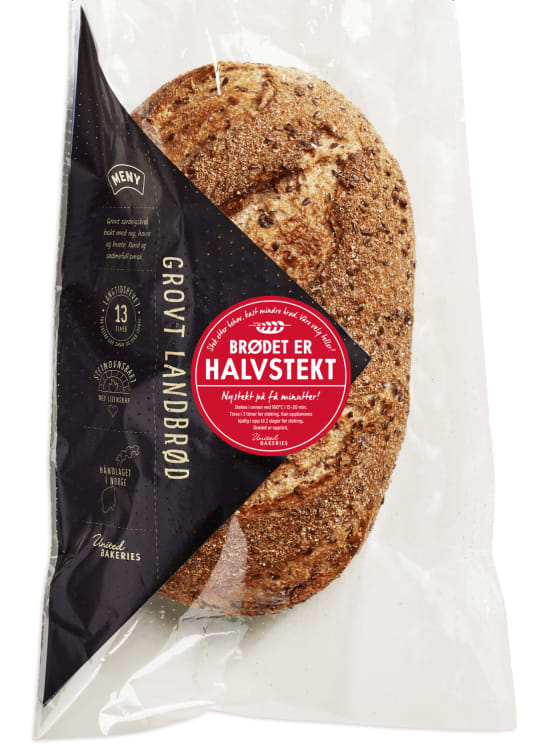 Grovt Landbrød Halvstekt 840g Håndlagd er et produkt levert av United Bakeries Norway og produktet inneholder 257.00 kcal per 100g, hvorav 6.50 g er fett, 8.90g er proteiner og 38.00 g er karbohydrater.