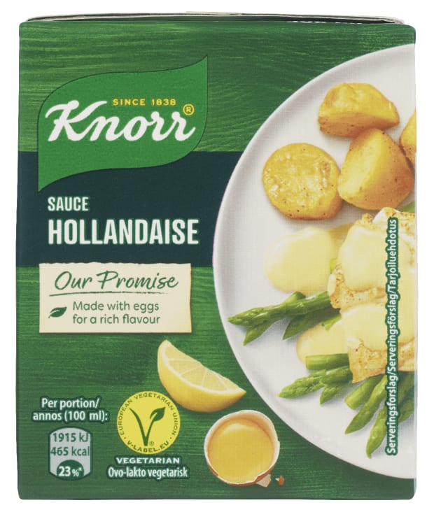 Hollandaise Saus Serv.Klar 300ml Knorr er et produkt levert av Unilever norge as og produktet inneholder 465.00 kcal per 100g, hvorav 50.00 g er fett, 1.50g er proteiner og 1.90 g er karbohydrater.