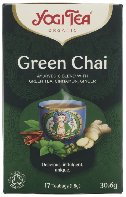 Yogi Tea Green Chai er en nydelig grønn te. Aromatisk spearmint, kardemomme og søt kanel er hemmeligheten bak den eksepsjonelle smaken i denne sjeldne, grønne teen. Nyt den overraskende runde og delikate teen varm eller kald. Drikk den på indisk vis, søtet med litt melk eller et alternativ til melk.
