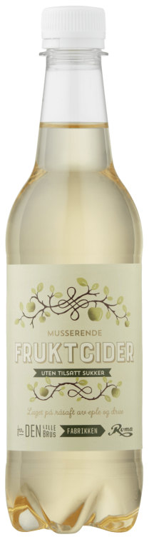 Fruktcider u/Sukker 0,5l flaske Roma er et produkt levert av ROMA MINERALVANNFABRIKK, produktet inneholder 9.00 kcal per 100g, hvorav 0.00 g er fett, 0.00g er proteiner og 1.90 g er karbohydrater.