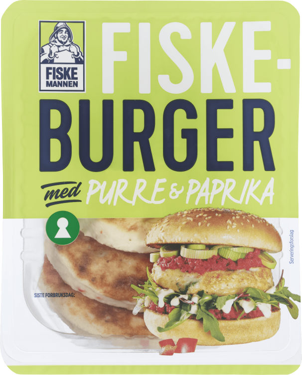 Fiskeburger 65% Paprika/Purre 400g Fiskemannen