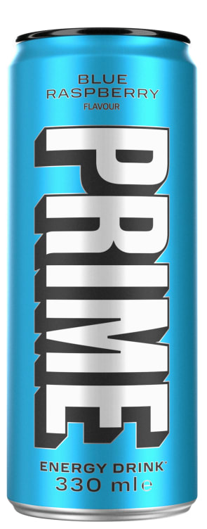 Prime Energy Blue Raspberry er en energidrikk med smak av bringebær