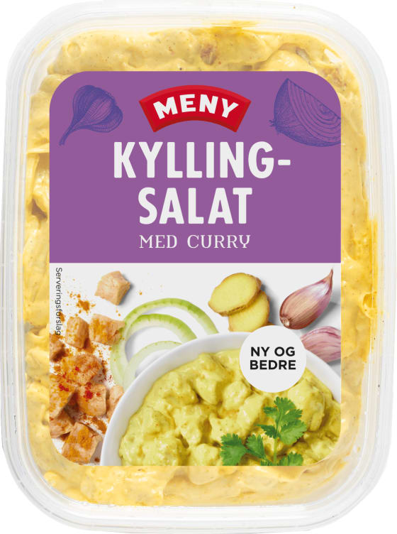 Kyllingsalat m/Curry 200g Meny er et produkt levert av MATBØRSEN AS, produktet inneholder 476.00 kcal per 100g, hvorav 48.00 g er fett, 7.90g er proteiner og 3.20 g er karbohydrater.
