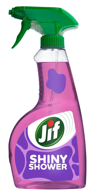 Med Jif Shiny Shower går det lynraskt å vaske dusjen! Den kraftfulle sprayen fjerner smuss og såperester motvirker dugg og kalkdannelse og etterlater dusjen skinnende ren – uten at du trenger å skrubbe. Helt Bad Ass!