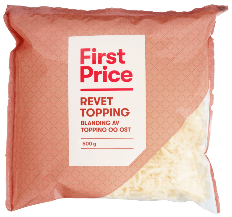 Revet Topping 500g First Price er et produkt levert av UNIL AS, produktet inneholder 306.00 kcal per 100g, hvorav 22.00 g er fett, 18.50g er proteiner og 8.50 g er karbohydrater.