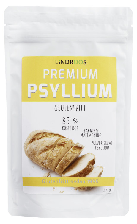 Et glutenfritt produkt som kommer fra den indiske planten psyllium plantago ovata. Psyllium er veldig rik på fiber, men har ingen smak eller lukt. Med Lindroos Psyllium får den glutenfrie deigen de samme egenskapene som en vanlig deig, det betyr at den blir mulig å kna eller kjevle