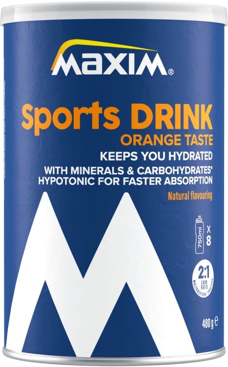 Maxim Sportsdrikke Appelsin er et energipulver med frisk smak av appelsin som blandes med vann. Denne sportsdrikken bidrar til riktig balanse av væske, mineraler og karbohydrater i kroppen, perfekt før og under trening eller konkurranse. Med en lett hypotonisk formel, sikrer den raskere væskeopptak enn vann alene. For optimalt opptak, bruk 3 skjeer per 750 ml.