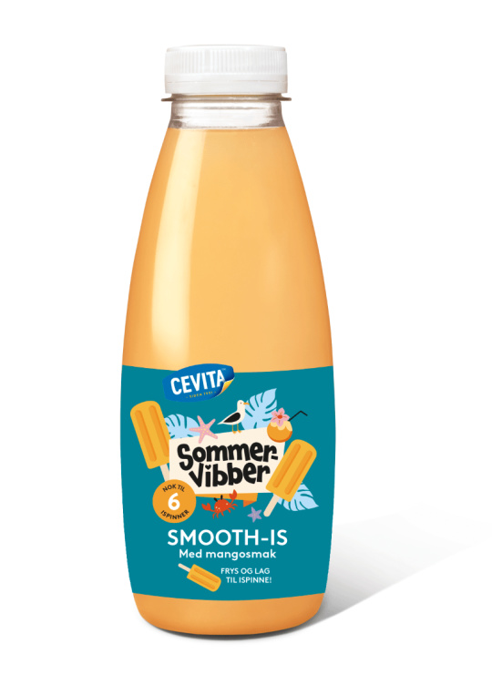 Sommervibber Smooth-IS med tropisk smak av mango er en nydelig fruktsmoothie som kan fryses til sommerens deiligste ispinne eller nytes som forfriskende leskedrikk.