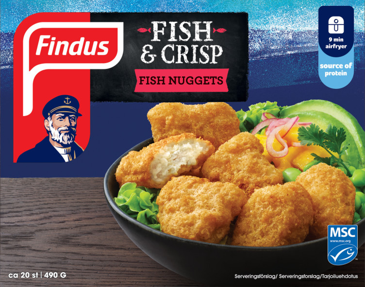 Findus Fish & Crisp Nuggets er et godt og enkelt alternativ for deg som vil spise mer fisk! Den er knasende sprø og mild i smaken - passer perfekt som snacks eller til tapas, med ulike sauser og dipper. Den kan også nytes i en wrap eller på en frisk salat. Dette er fisk som alle liker! Med den gode smaken og sprø paneringen, er det superlett å variere fiskemåltidene. Fisken er selvsagt fisket fra bærekraftige bestander, og er derfor merket med miljømerket MSC.