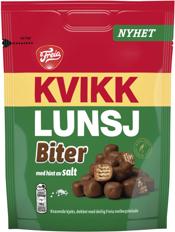 Kvikk Lunsj Biter er delikate og sprø biter! En herlig kombinasjon av knasende kjeks dekket med deilig Freia melkesjokolade. I tillegg har vi tilsatt et hint av salt i hver eneste bit! Les om COCOA LIFE på www.freia.no/baerekraft