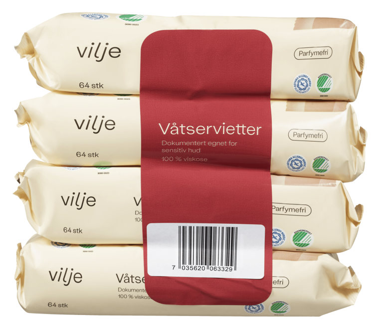 Våtservietter Plastfri 4x64stk Vilje