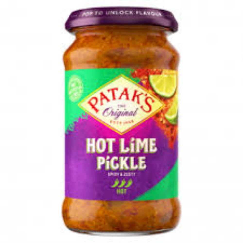 Vekk smaksløkene dine med Patak's Hot Lime Pickle, en eksplosiv blanding av krydret lime og eksotiske krydder. Dette tilbehøret er perfekt for å tilføre et spark til ethvert måltid.
