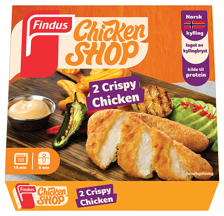Crispy Chicken Chicken Shop 170g Findus er et produkt levert av FINDUS NORGE DAGLIGVARE, produktet inneholder 269.00 kcal per 100g, hvorav 14.00 g er fett, 13.00g er proteiner og 22.00 g er karbohydrater.