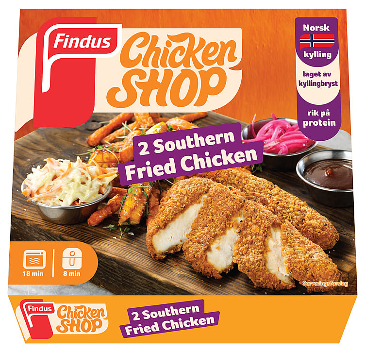 Fried Chicken Chicken Shop 180g Findus er et produkt levert av FINDUS NORGE DAGLIGVARE, produktet inneholder 285.00 kcal per 100g, hvorav 14.00 g er fett, 15.00g er proteiner og 24.00 g er karbohydrater.