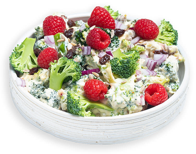 Brokkolisalat m/Bringebær pr Kg er et produkt levert av Egen prod.varer og produktet inneholder 282.00 kcal per 100g, hvorav 27.00 g er fett, 2.80g er proteiner og 7.20 g er karbohydrater.