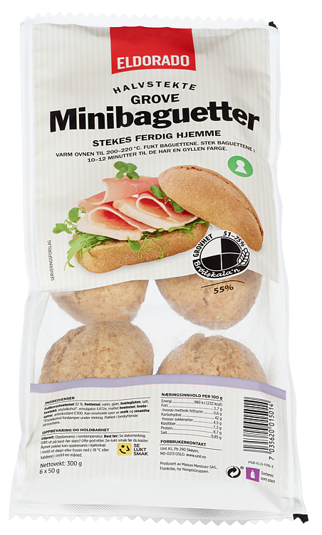 ELDORADO MINIBAGUETTER 6 x 50 g grove halvstekte