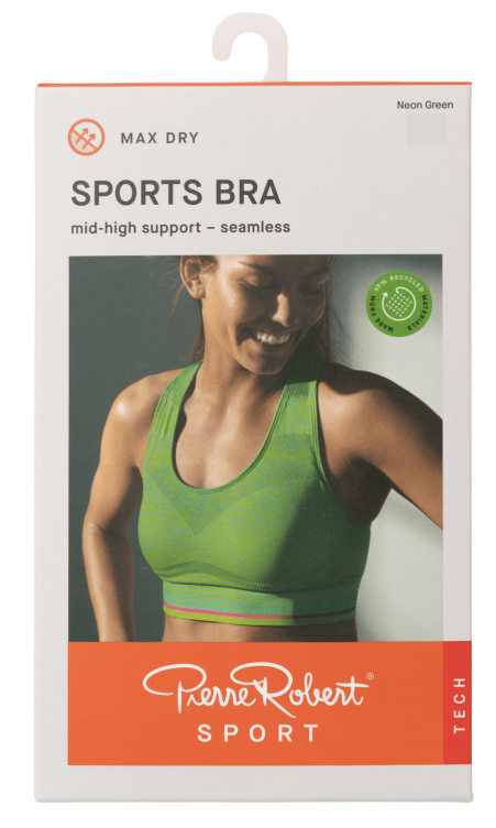 Sports-BH med god støtte, tilpasset medium til høy intensitet. Sømløs og formstrikket for mest mulig komfort. MaxDry™ teknologi og brede meshfelt i ryggen sørger for god ventilasjon og fuktransport der man svetter mest.