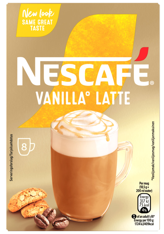 • Vanilla Latte er en utsøkt blanding av lekker kremet melk og NESCAFÉ-kaffe med vaniljesmak