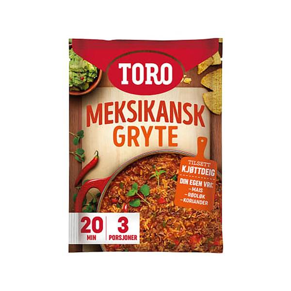 TORO Meksikansk Gryte med ris, bønner og paprika kan serveres med alle typer kjøtt, men smaker spesielt godt med kjøttdeig. 189g