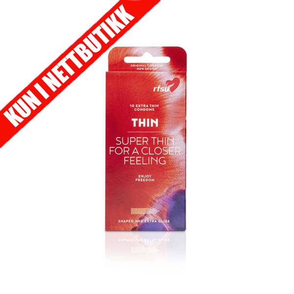 RFSU Kondom Thin er tynne kondomer med ekstra glidemiddel for en nærmere følelse - nesten som om du ikke har den på. Thin er for alle som synes at en ekstra tynn kondom er et bra alternativ. Ufarget, profilert latexkondom med glatt overflate, beholder og